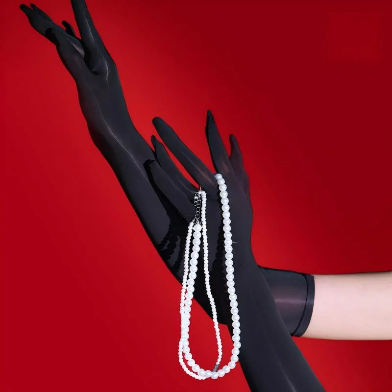 Sexy Gloves High Elastic Ultra-Thin Oil Shiny Seamless Invisible Medium Tube Long Sleeve Porno Clubwear