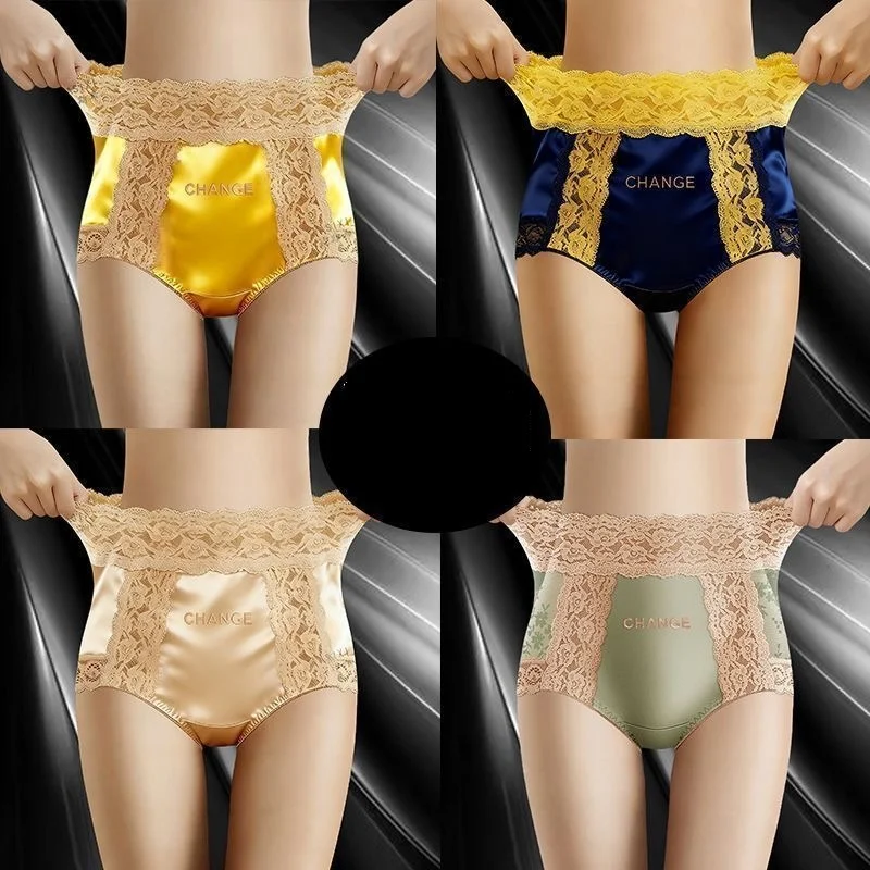 Sexy silk lace high-waisted panties